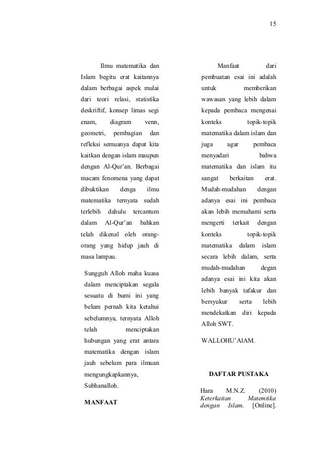 Analisis Shalat melalui Logika Matematika” dalam buku Islam, Sains dan Teknologi. 2006. Malang: UIN Malang Press.